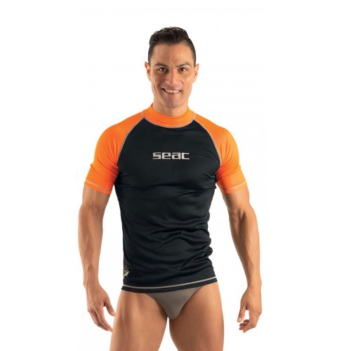 Ανδρική Κοντομάνικη Μπλούζα Rash Guard Με Προστασία UV+50 Seac Sub T-Sun Short Black/Orange