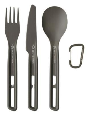 Το ελαφρύ και λειτουργικό σετ μαχαιροπίρουνων Frontier περιλαμβάνει 1 μαχαίρι, 1 πιρούνι, 1 κουτάλι και 1 καραμπίνερ για την εύκολη αποθήκευση και τη μεταφορά τους. Όλα τα σκεύη είναι κατασκευασμένα από ανοδιωμένο αλουμίνιο αεροπορικού τύπου, το οποίο τα καθιστά εξαιρετικά ανθεκτικά.