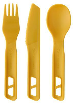 Το ελαφρύ και ανθεκτικό σετ μαχαιροπίρουνων δεν πρέπει να λείπει από το κάμπινγκ. Διαθέτει 1 κουτάλι, 1 πιρούνι και ένα μαχαίρι, τα οποία αποθηκεύονται πανεύκολα για την εύκολη μεταφορά τους. Στις άκρες διαθέτουν εγκοπές, έτσι ώστε κουμπώνοντας τη μία άκρη του ενός σκεύους με το άλλο να δημιουργείται μια πιο μακριά λαβή.