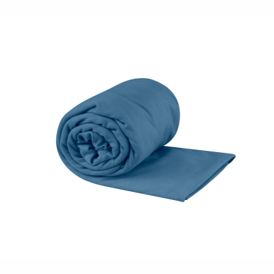 Ελαφριά και εύκολα συσκευάσιμη μπλε πετσέτα. Απορροφά τρεις φορές το βάρος της σε νερό και στεγνώνει εξαιρετικά γρήγορα. Με απαλή και μεταξένια πλέξη.