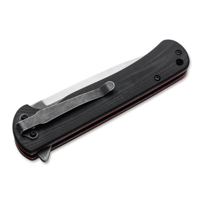 Σουγιάς Τσέπης Boker Magnum Mobius BK.05.01MB726 Το Magnum Mobius είναι ένα τακτικό πτυσσόμενο μαχαίρι πλήρους μεγέθους με μια κομψή εμφάνιση που σπάνια συναντάται σε αυτή την κατηγορία. Η επιφάνεια των λαβών από υλικό G10 έχει μια διακριτική αλλά αποτελεσματική υφή. Δύο στρώσεις από σκούρες κόκκινες ίνες ανάμεσα στις μεταλλικές πλάκες και τις μαύρες λαβές προσθέτουν οπτικό ενδιαφέρον. Ο μηχανισμός linerlock είναι ενσωματωμένος στη λαβή — διακριτικός αλλά εύκολος στη χρήση. Η λεπίδα από ανοξείδωτο ατσάλι 440A διαθέτει flipper και εντυπωσιακό φινίρισμα δύο αποχρώσεων. Συνοδεύεται από ανθεκτικό, ευρύ κλιπ μεταφοράς. Χαρακτηριστικά : Τύπος : Σουγιάς τσέπης Χάραξη : Ναι Μάρκα : Magnum Συνολικό μήκος : 21,50 cm Μήκος λεπίδας : 9,50 cm Πάχος λεπίδας : 3,30 mm Βάρος : 143,00 g Υλικό λεπίδας : 440A Υλικό λαβής : G10 Ανοιχτήρι : Flipper Άνοιγμα : Χειροκίνητο Τύπος κλειδαριάς : Linerlock Κατασκευασμένο στην : Ασία